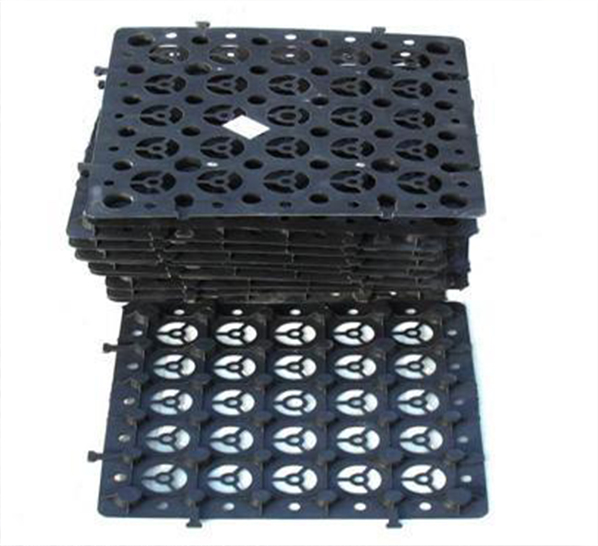 蓄排水板的安裝施工根據(jù)設(shè)計(jì)圖要求鋪設(shè),板材采用扣合的搭接方式。